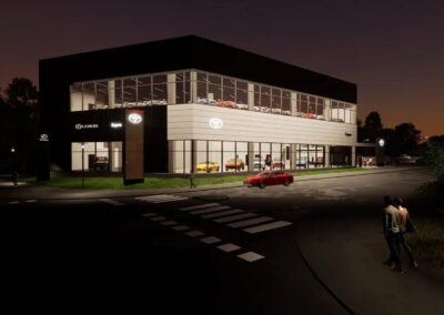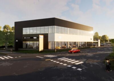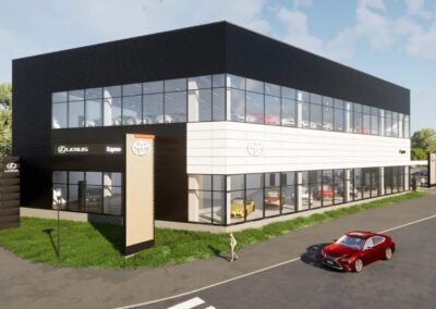 Noin 4600 neliömetrin laajuinen kolmikerroksinen autotalo tarjoaa tilat myynnille, huollolle ja korjaamotoiminnalle. Rakennuksen arkkitehtuurissa on panostettu ajattomuuteen, käytännöllisyyteen ja visuaaliseen harmoniaan, mikä tekee siitä näyttävän osan ympäristöään. Tekovan vahva kokemus toimitiloista näkyi hankkeen toteutuksessa alusta alkaen.